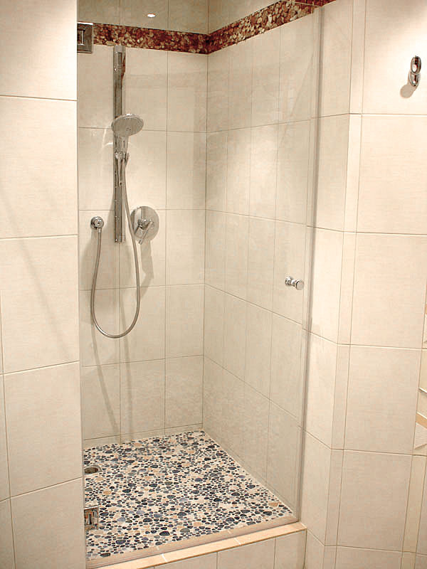 Хороший душевой уголок здесь решает сразу три задачи: экономит площадь,