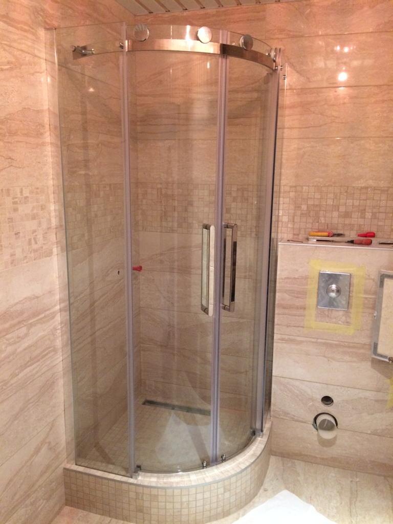 Все решения — из закалённого безопасного стекла 8 мм, с точной подгонкой по размер.